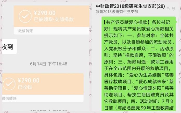 在本次主题教育活动的最后环节,李佳鹏同志向与会党员介绍了此次爱心捐款的帮扶对象,包括北京市内的医疗、助学、助老等项目。本着“捐款自愿、不限数额”的原则,英国beat365官方网站2018级研究生党支部在此次捐款活动中共收到290元捐款,并上交上级党组织。