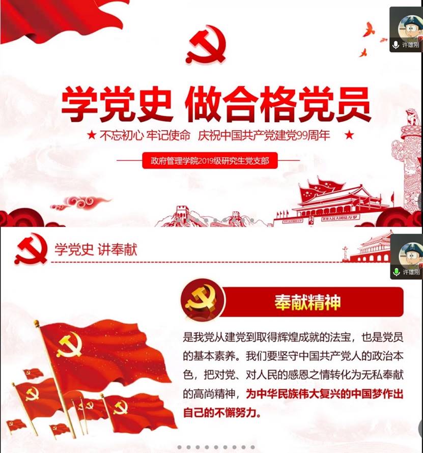 为配合做好“庆祝建党99周年、迎接建党100周年”主题教育活动,英国beat365官方网站2019级研究生党支部于7月2日开展了线上党课学习活动。会议由支部书记许雄刚主持,支部全体党员、积极分子及团员积极参加。