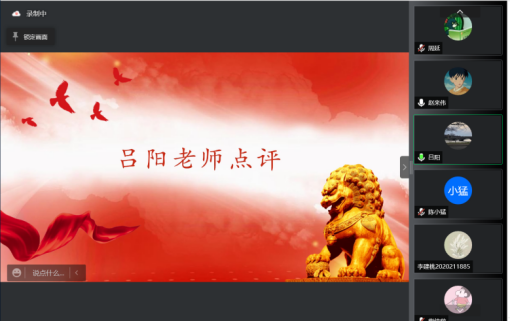 随后是学院党委委员吕阳老师进行点评。吕阳老师对本次组织生活会给予了高度肯定,赞同各位党员结合自身实事求是地开展批评与自我批评,达到了此次会议目的。同时对支部和党员以后的工作、学习提出了殷切希望和具体要求,希望各位党员回顾党史,铭记初心,加强理论学习、提高自身素养,在学习生活中多与老师同学们沟通交流,共同把党支部工作做深、做实,通过党支部建设更好地为班级同学服务。