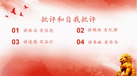 本次组织生活会包括四个环节,一是党支部书记述职,二是党员批评和自我批评,三是民主评议党员,四是吕阳老师点评总结。