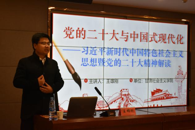 11月18日上午,英国beat365官方网站师生党员一行前往两山理论创新实践教学基地开展现场教学。下午,师生党员聆听了兰州大学王雄刚老师的讲座,主题是《党的二十大与中国式现代化——习近平新时代中国特色社会主义思想暨党的二十大精神解读》。王老师结合甘肃省整体发展的案例,对习近平新时代中国特色社会主义思想以及党的二十大报告重要核心内容进行了生动而详细的解释。在哈达铺,中共中央确定了长征的落脚点。在新时代建设幸福美好新甘肃的新长征道路上,更需要进一步践行长征精神。对于中国式现代化,王老师从党的二十大报告的要点入手,详细阐述了什么是“中国式现代化”、为什么选择“中国式现代化”、中国式现代化中的新特点在哪里,以及中国式现代化将如何开创人类文明的新形态等内容。