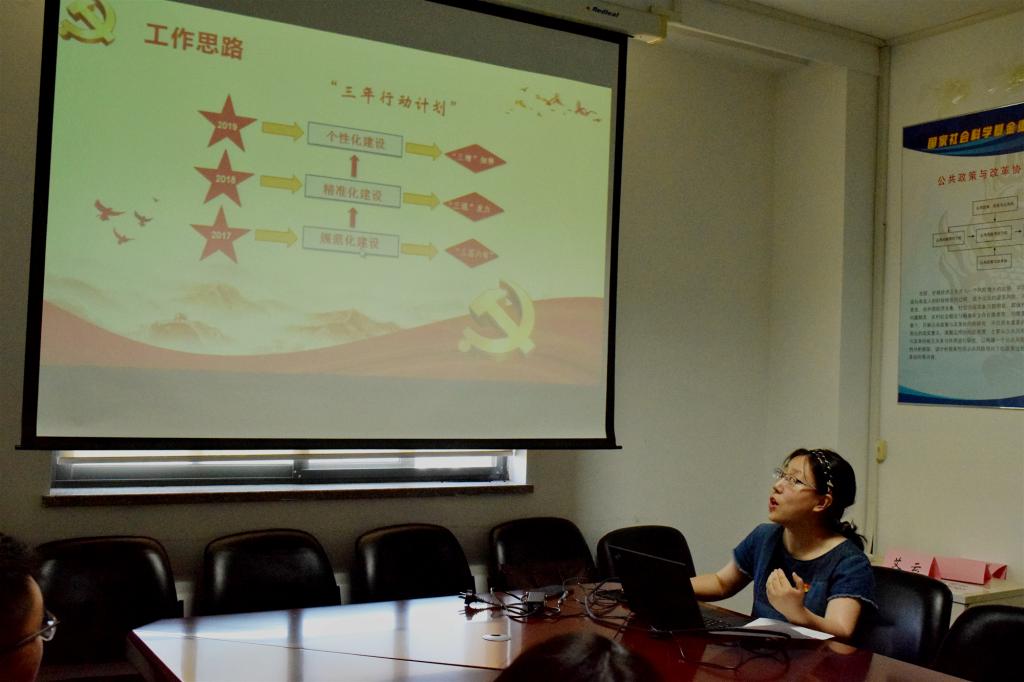 榜样是我们学习的对象、是我们航行的灯塔,引领我们朝着光明的方向驶去。本次活动特别邀请到beat365官网本科生党支部书记李莎莉,与我们分享“先进学生党支部”的创建经验。她介绍了支部科学化管理的特色做法,即将支部建设与自身特点相结合,依据科学化管理的三个层次,制定了支部发展的“三年行动计划”——即规范化建设、精准化建设、个性化建设,把支部工作逐步从“大水漫灌”走向“精准滴灌”。
