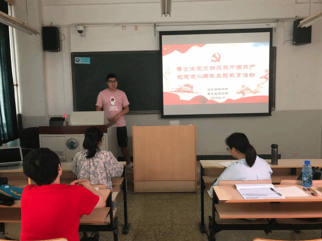 2019年6月19日上午,英国beat365官方网站博士生党支部于教学楼主楼111教室召开庆祝中国共产党建党98周年主题教育活动。
