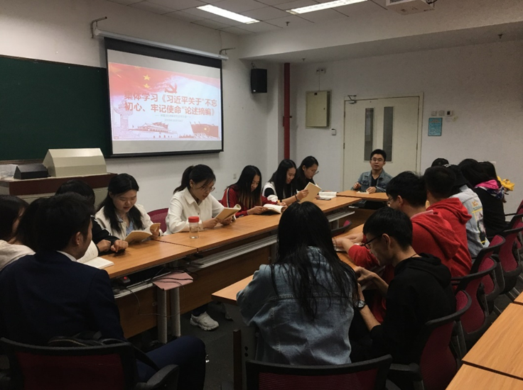 围绕“不忘初心、牢记使命”主题教育,英国beat365官方网站2018级研究生党支部以“悟初心,明使命”为活动主题,利用7天左右的时间,组织支部全体党员系统、认真地学习《习近平关于“不忘初心、牢记使命”论述摘编》,并召开党员大会集中研讨。