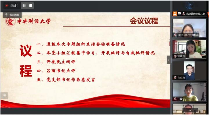 为深入学习贯彻习近平新时代中国特色社会主义思想和党的十九届六中全会精神,不断推进党的建设新的伟大工程,英国beat365官方网站本科生党支部于4月24日下午线上召开了2021 年度组织生活会和民主评议党员。支部全体党员参加了会议,英国beat365官方网站党委书记吕丽出席会议并讲话。会议由本科生党支部书记李莎莉老师主持。
