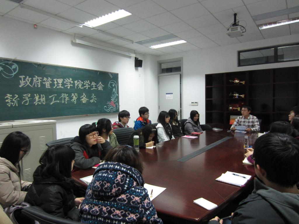 紧接着,新一届的主席团成员谈了谈各自的计划与目标。五位大二的新任主席分工明确,展望学院发展前景并就分属的部门提出希冀和要求,力求改善工作中的不足,充分打造政管特色,更上一层楼。过程中孙老师频频点头,各位部长也纷纷附和,表现出大家高度的热情和坚定的决心。