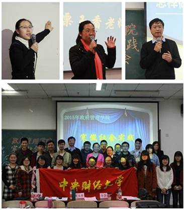 接着获得一等奖的李弘扬同学和马晓同学分别与同学们分享了他们在社会实践中的感悟和收获。行政管理14级的李弘扬同学充分利用了13级同学们传授给他们的经验,并谦虚地说:“我是站在巨人的肩膀上,才能把这次的社会实践做好。”这次社会实践报告评选值得一提的一点是,不光是老师还有本科生也参与了这次评审活动,让本科生们切实感受评审过程的公正、严肃。参与评审的吕品谷同学和马子悦同学都表示通过参与评审收获了很多经验,令他们感触颇深。