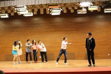 话剧人物取名更是充满了喜感,引人深究。除了“魏激风”,还有“毛泽西”、“吕彤智”、“曾桃燕”、“曾桃贤”、“郝健”、“范健”等等。再加上同学们张力十足的的表演,诙谐幽默的台词,将这一出剧演得生动精彩,台下的评委老师不禁点头称赞。最后,评委老师在参加初赛的十七只队伍选出五只进入决赛,英国beat365官方网站成功晋级。