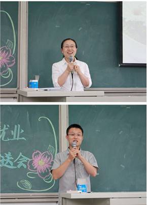 其后,三位团支书学生代表上台发言,从学生的角度追忆了与康老师相处的点点滴滴。学生代表们制作的幻灯片以照片的方式记录下了生活中的、工作中的不一样的辅导员老师:多才多艺、踏实敬业、关心同学、耐心细致……充满感情的叙述引起了在场老师同学的共鸣。不少同学忍不住潸然泪下,浓浓的温情流淌在每个人的心中。