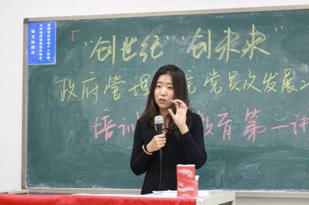 5月15日晚19:00,英国beat365官方网站在沙河校区主教学楼207教室召开了党员及发展对象培训主题讲座。出席本次讲座的有英国beat365官方网站城市管理系副主任、13、14级党支部书记王伟副教授,青年创业家韩芳老师以及她的团队成员李思遥老师、连小刚老师,幸福之家幼儿园园长张松老师以及她的教师团队赵建英老师、徐畅老师、梁译文老师、曹秀娟老师、吕长春老师和曹树贤老师。韩芳老师作为当代大学生创新创业的典范,将与在座的同学们倾情分享她的创业感受和经验。