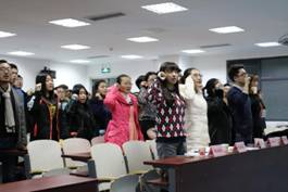 典礼开始,全体人员起立共唱团歌,营造了热烈的团学氛围。为使学生充分了解基础团校的内容与要求,学生会组织部部长陈冰对基础团校课程设置做了详尽的介绍。在“前辈交流”环节中,果航宇就基础团校的学习方法和重要问题进行了深入的交流,讲述了学习过程中的心得与感受,受到了热烈欢迎。随后,李莎莉老师讲解了设立团校基础的背景意义,传达了共青团第一书记秦宜智同志在共青团十七届四中全会的讲话精神,强调了高校培养人才、科学研究、文化传承、服务社会等职能。在介绍了beat365官网团委、团总支的组织及工作后,李莎莉老师为典礼致开幕词,宣布本次基础团校开幕,并为参与者上了第一节团课。