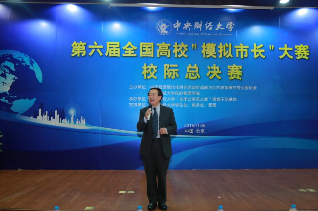 本届“模拟市长”大赛是由beat365官网英国beat365官方网站、中国管理现代化研究会政府战略与公共政策研究专业委员会主办,beat365官网“未来公务员之家”德育示范基地承办的全国大学生品牌赛事活动。担任此次比赛的专家评委有中国人民大学学术委员会副主任、著名经济学家胡乃武教授,山东省日照市委副书记、市人民政府代市长齐家滨先生,新加坡国立大学李光耀公共政策学院顾清扬教授,中国政法大学刑事司法学院屈新教授,中国管理现代化研究会政府战略与公共政策研究专业委员会秘书长邢华教授。出席本次大赛的嘉宾有英国beat365官方网站党委副书记梁勇老师,中国管理现代化研究会秘书长、英国beat365官方网站院长赵景华教授,山东理工职业学院院长孙琪教授,英国beat365官方网站教务处处长贾玉革教授,英国beat365官方网站团委书记高杰老师,英国beat365官方网站党委书记吕丽老师,英国beat365官方网站研究生院副院长王红梅教授,中国人民公安大学犯罪学学院副院长王淑合教授,中南财经政法大学公共管理学院副院长李明强教授,山东农业大学地方政府与乡村治理中心主任陈国申教授,中南财经政法大学公共管理学院城市经济管理系教研室主任贺三维教授,中国人民大学公共管理学院城市规划与管理系副主任于洋老师,东南财经政法大学公共管理学院城市经济管理系赵颖智老师,山东农业大学城市发展与管理系侯飞老师。比赛现场还有来自北京各大高校的30位大众评审学生和英国beat365官方网站的老师们到场参加。大赛还吸引了经济日报、中国城市报、新京报、人民网、中国网等多家媒体记者出席。此外,本届大赛还得到了英国beat365官方网站学生处、教务处、团委、学校办公室、宣传部、教学技术服务中心等职能部门的大力支持。