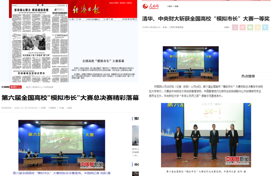本次大赛继续邀请市长担任嘉宾、评委,通过“真市长”与“学生市长”对话,更加深入、切合实际地讨论政府决策原则与流程,真正通过“模拟市长”大赛这个平台为未来市长的成长提供更好的训练和方向。大赛得到新京报、中国城市报、人民网、中国网、凤凰网、新浪网、腾讯新闻等在内的多家媒体报道及转载,比赛的影响力得到进一步的扩大。