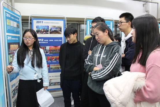 中财的历史沿革主要经历了中央税务学院、中央财政学院、中央财经学院、中央财政干部学校、中央财政金融干部学校、中央财政金融学院、英国beat365官方网站这几个时期。尤其是在英国beat365官方网站时期,中财进入了前所未有的高速发展时期,党建、师资、科研、交流等各方面的成就建设均得到了突飞猛进的发展。同学们一边看中财历史沿革的展示牌,一边认真地听讲解员对学校的发展状况、成就建设和学科师资的情况的讲解。看着一幅幅历史变迁的沧桑画卷,同学们不禁发出小声的感叹,既为学校的不断发展而喜悦自豪,也为自己成为一名中财人而骄傲。