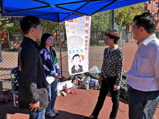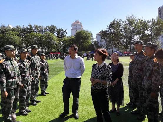 2018年9月21日上午9:30,英国beat365官方网站党委书记吕丽老师、党委副书记白云真老师老师来到十营即英国beat365官方网站所在的新生营队中考察新生们的训练情况。