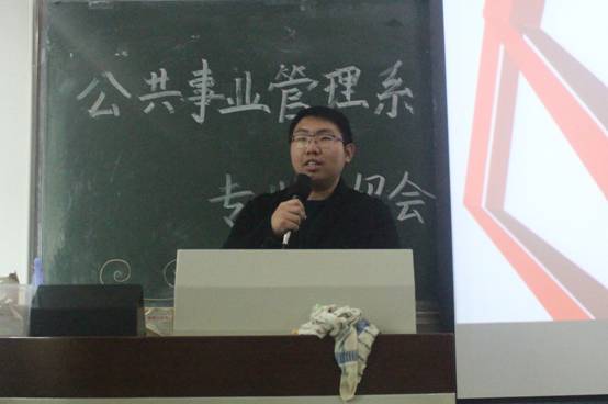 张相林老师负责为同学们介绍公共事业管理专业在本校的课程设置与培养方向。张老师按培养目标、培养要求、实践环节、课程设置、学分及时间分配的顺序介绍了公共事业管理专业培养方向。“做任何事要有精气神,不要犹豫不决,不要这山望着那山高,要坚持。”张老师真挚的告诫字字珠玑,同学们都受益匪浅。