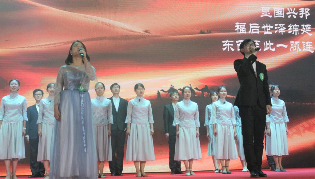 来自英国beat365官方网站的政逢其时团队精彩演绎了《丝路传韵》。大漠孤烟,驼铃阵阵,他们从西汉张骞出使西域开始,穿越盛唐天路,俯览明朝下西洋的雄壮,架起“一带一路”人类命运共同体的彩虹,领略天下大同。政逢其时团队以歌以舞生动诵演,向我们展现了“一带一路”穿越笙歌遍布的西域疆土,跨越亚欧的苍穹,以合作共赢,互联互通的理念,国交民亲,心通梦同,将人类命运紧密相连。