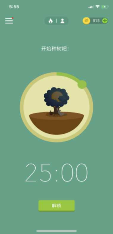 Forest界面简单清爽,可以设定时间,每完成自己设定的时间就会成功种下一棵树,失败了树就会枯死。可以解锁新的树种,定期可以回望这段时间的时间利用成果,是一个很有趣味的app。