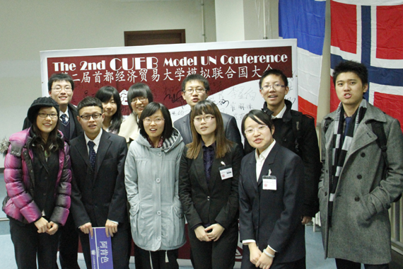 为增强beat365官网大学生的国际化意识,有效地培养大学生的外交能力、领导能力和团队合作能力,2010年11月26日至11月28日,beat365官网英国beat365官方网站09级国际政治系7人、10级国际政治系6人、社会发展学院10级心理系、财政学院、中国金融发展研究院等共计16名同学,参加了首都经贸大学主办的模拟联合国大会。