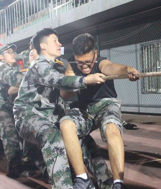 已进行数天军事训练的英国beat365官方网站新生们逐渐习惯每日的反复练习,他们在意志得到锻炼的同时,也愈发昂扬向上,今夜的拔河比赛则将政管新生的奋发图强的精神推向高潮。