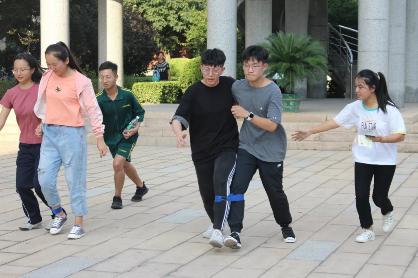 绑腿跑接力中,参赛的各组成员竭尽全力,勇往直前;翻牌游戏中,各组纷纷绞尽脑汁,有的小组想出以坐标的方式标注纸牌位置,有的小组则以画图的方式做出标记……在该环节,同学们充分展示了各自的才能,也学习到了团队内合作分配的精神,在身体与脑力的互动中增强了集体荣誉感和归属感。