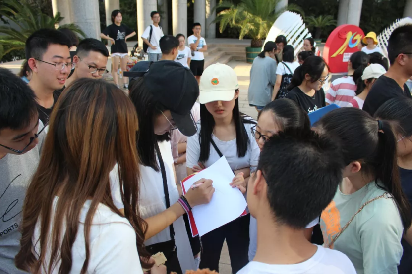10个小组的成员分别在组长的带领下集合,并向组内成员做自我介绍。在初步了解组内的小伙伴后,组内成员分为两支队伍面对面进行PK,抢先猜出对方名字者获胜。有的同学记忆力超强,“秒杀”对手;有的同学则“相望无言”,只得苦笑。一轮过后,大家基本上记住了组内成员的名字,拉近了彼此之间的距离,为之后的环节做好了准备!