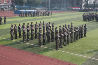 骄阳下,同学们笔挺的脊梁、紧绷的双腿、高抬的下颚,是对“不动如山”的完美演绎。酷暑中,同学们整齐划一的步伐、震耳欲聋的呐喊声、坚定火热的眼神,是对“战火青春”的最好诠释。