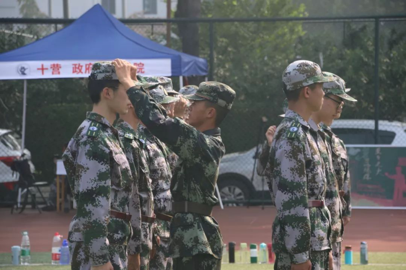 烈日滚烫,骄阳似火,但从未阻挡我们挺拔的军姿,整齐的踏步和铿锵的正步。我们每个人都是十营的一份子,一想到自己不是孤身一人面对舒适区之外的挑战,心中便有力量支撑着我们与骄阳抗争。敬礼右手要定在帽檐,踏步要大腿向上抬,齐步要直直地摆开大臂,正步要上端下砍。