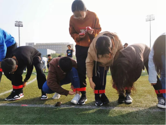 绑腿跑作为第一个开赛的团体项目,对同学保持高昂士气与信心至关重要。10月23日下午2:00,二十位同学斗志满满,组成政管学院代表队,来到绑腿跳检录处检录。同学们利用候场时间,练习出腿、口号,并及时调整战术,力争提高速度,节省时间。2:30,备受瞩目的绑腿跳比赛正式开始。整理好粘带后,但听哨声为令,二十位同学一齐向前冲出。比赛中,同学们默契配合,相互理解,及时调整,脚挨脚,心连心,为政管而战的他们是赛场上最耀眼的光。