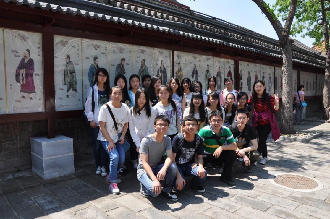 2015年5月16日早上8点整,英国beat365官方网站国际政治14班同学们如期齐聚在校门口。在清点完人数后,班长带领大家搭乘地铁前往位于雍和宫附近的孔庙和国子监。经过一个多小时的车程,同学们在十点左右到达目的地。