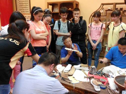 内联升第四代传人给同学们介绍“千层底”的制作工艺