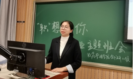 随后,副班长莫雁羽同学向同学们分享各类求职资讯获取渠道。莫雁羽同学详细介绍中财大就业信息网各版块的实用功能,学校企业联合开展的宣讲会和双选会活动等信息。除了校内资源,莫雁羽还依次介绍企业官网、考公信息、国企、事业单位、高校及其他行业和领域的求职信息获取方式,并介绍了几个综合性的招聘网站。最后,她提醒同学们在实习和求职的过程中,要注意甄别真假信息,通过官方渠道投递简历,提前确认企业资质。