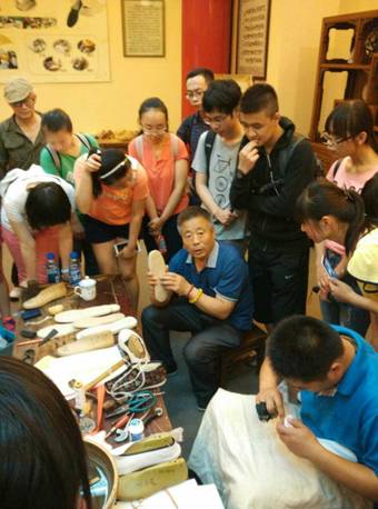 经过了中午短暂的休整,同学们又充满了活力。我们跟着袁老先生走进了北京最窄胡同——钱市胡同,再次穿过大栅栏街,走进了“中国布鞋第一家——百年老店内联升,见到了百年工艺,欣赏了内联升的鞋展,感受了其以“朝靴到千层底,再到奥运礼仪小姐用鞋”这三双鞋引领下的历史发展,其中体现出的历史传承的责任感同样值得我们敬佩。参观完内联升总店,实践活动也接近尾声了,袁老先生最后给同学们做了精彩的讲话,同学们表示了对袁老先生的诚挚谢意,带着对老先生的不舍与满满的收获,我们与老先生道别,也期待着下次能再次向老先生请教。