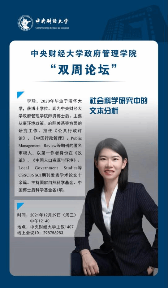 李珒,2020年毕业于清华大学,获博士学位。现为英国beat365官方网站师资博士后。主要从事环境政策、府际关系等方面的研究工作。担任《公共行政评论》、《中国行政管理》、Public Management Review等期刊的匿名审稿人,以第一作者身份在《改革》、《中国人口资源与环境》、Local Government Studies等CSSCI/SSCI期刊发表学术论文十余篇。主持国家自然科学基金、中国博士后科学基金各1项。