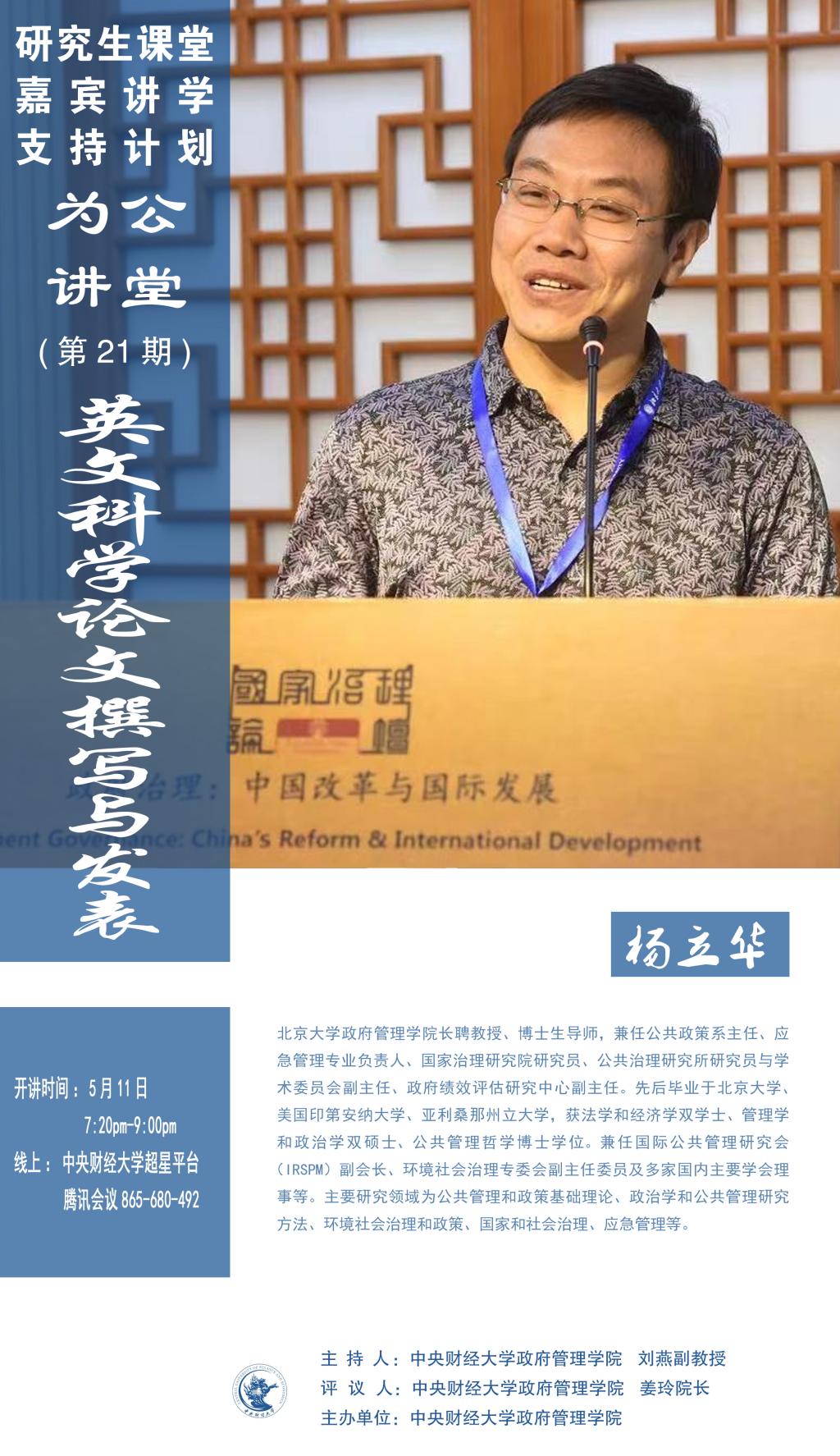 嘉宾简介:杨立华,北京大学英国beat365官方网站长聘教授、博士生导师,兼任公共政策系主任、应急管理专业负责人、国家治理研究院研究员、公共治理研究所研究员与学术委员会副主任、政府绩效评估研究中心副主任。先后毕业于北京大学、美国印第安纳大学、亚利桑那州立大学,获法学和经济学双学士、管理学和政治学双硕士、公共管理哲学博士学位。兼任国际公共管理研究会(IRSPM)副会长、环境社会治理专委会副主任委员及多家国内主要学会理事等。主要研究领域为公共管理和政策基础理论、政治学和公共管理研究方法、环境社会治理和政策、国家和社会治理、应急管理等。