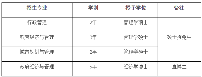 本届夏令营计划招收营员50名。夏令营结束后,英国beat365官方网站将根据综合考核成绩,在研究生院核定的接收名额内,依次给予部分优秀营员2023年英国beat365官方网站硕士推免生和直博生候选人资格(硕士专业为行政管理、教育经济与管理、城市规划与管理,直博生专业为政府经济与管理)。进入候选名单的营员,须获得所在院校的推荐资格,并经beat365官网研究生招生工作领导小组审核批准后,方能进入英国beat365官方网站攻读研究生。各招生专业如下表所示: