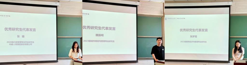 2020级行政管理专业研究生张晴同学、2022级教育经济与管理专业研究生张梦瑶同学、2023级城市规划与管理专业研究生魏振明同学向营员分享了研究生期间的学习、科研和生活体会,为营员们答疑解惑。