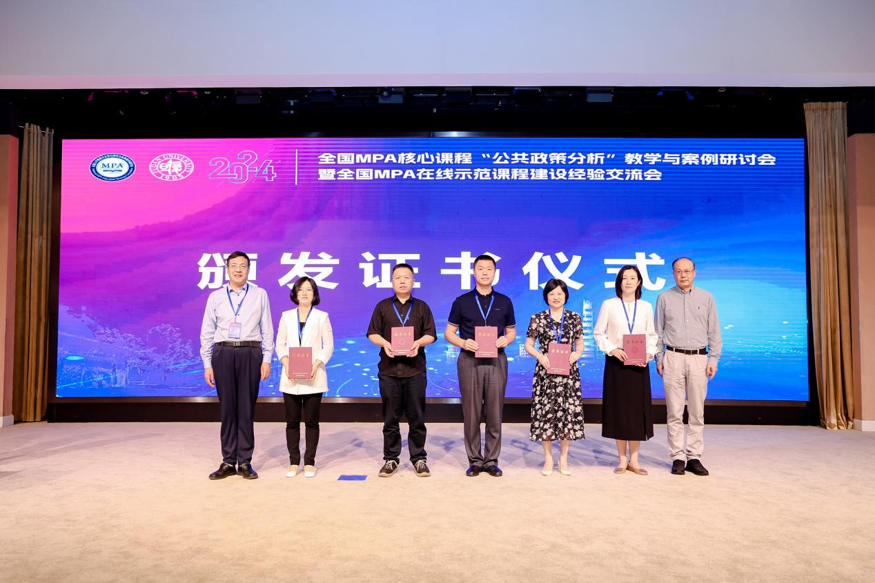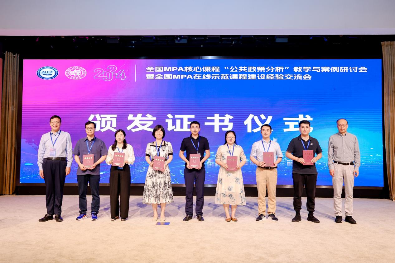 2024年7月6日至7日,由全国公共管理专业学位研究生教育指导委员会主办,复旦大学国际关系与公共事务学院、复旦大学MPA教育中心承办的2024年全国MPA核心课程“公共政策分析”教学与案例研讨会暨全国MPA在线示范课程建设经验交流会在上海市顺利举办。来自全国187所高校的300余位专家学者参加会议。英国beat365官方网站院长姜玲教授、MPA教育中心副主任宋魏巍副教授、行政管理系刘庆乐副教授受邀参加本次会议。
