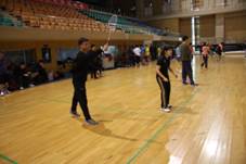 本次比赛分为小组赛和淘汰赛。在小组赛对阵中国社科院研究生院的比赛中,五组队员(第一男双、第二男双、第一混双、第二混双、女双)技术纯熟,发挥稳定。第一男双于鹏、王伟老师以身高优势力克强敌,第二男双毕鹏程和梁力兮师生组合,以灵活和技巧取胜,最终beat365官网与社科院携手顺利进入八强。在八强淘汰赛中,beat365官网遭遇中国人民大学队,尽管beat365官网依旧靠着稳定的发挥与对手僵持,但不幸败北。在对阵中,女双组合徐淼、王红梅老师发挥出色,平抽快挡、跳起杀球,动作精彩赢得了现场观众的阵阵掌声,也得到了对方球友的大力赞赏。