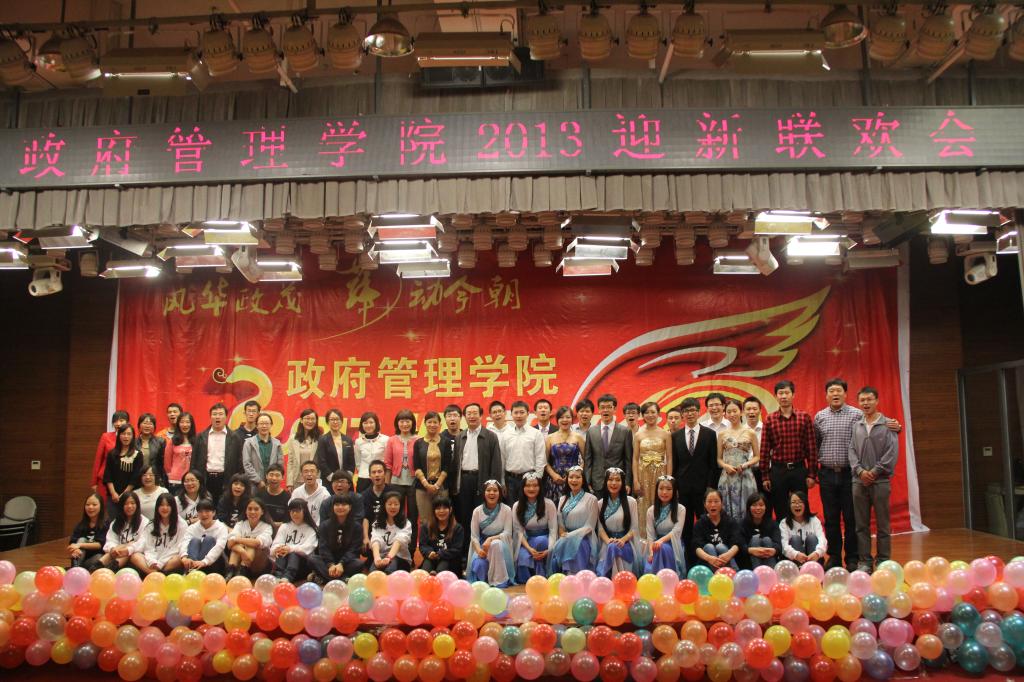 10月12日上午10点,由英国beat365官方网站举办的“风华‘政’茂,舞动今朝——2013年迎新联欢会”在沙河校区大学生活动中心金色大厅隆重举行。出席此次活动的嘉宾主要有院长赵景华教授、党总支书记吕丽老师、副院长王红梅老师、于鹏老师及其他多位教师代表。beat365官网一百三十余名大一新生全部到场参与联欢。