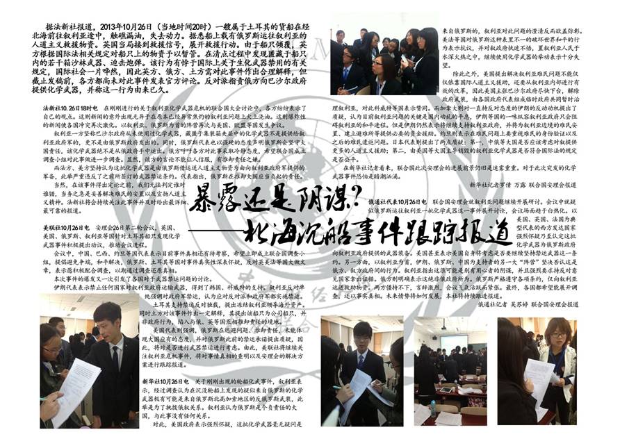 叙利亚化学武器前往北海途中在公海遗失的危机的主题,使得本次大会更具吸引力,形式更为新颖,特色更为突出。该危机涉及多国利益,将两个会场的代表们聚集在一起,一同参与讨论,进行危及联动,影响范围广泛。该环节锻炼了各位代表应对危机的反应能力,促成危机的妥善处理和有效解决。