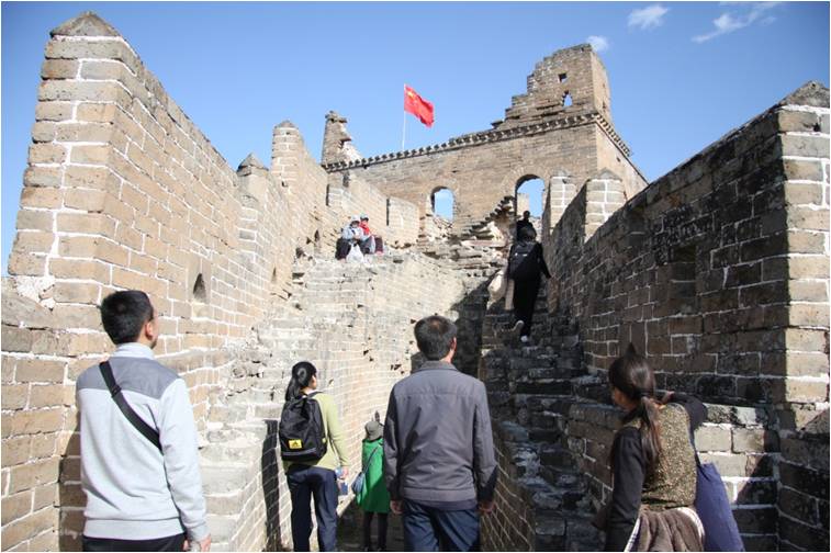 上午10时许,师生20余人抵达长城脚下。为激发大家的斗志,带队老师把全班同学分成三个小队,每小队在队长的带领下向目的地进发。攀登长城虽然辛苦,但常言道“不到长城非好汉”,各小队不甘落后,力争最先登上顶峰。期间,小队同学之间相互鼓励,发扬团结互助精神,共同向目标迈进,加深了同学之间的情谊,提高了团队凝聚力。