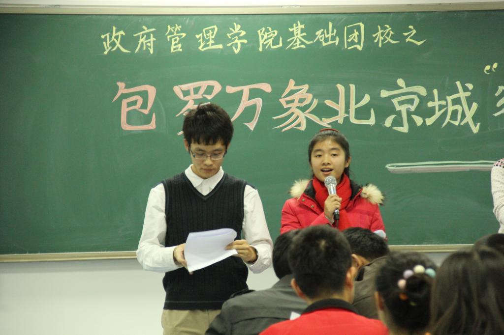 11月26日晚6时30分,英国beat365官方网站第七届基础团校“铁”近北京创意展示会在沙河校区西区学院楼302室如期举行。英国beat365官方网站团总支书记李飞凤老师、2012级辅导员康妍妍老师、管理科学与工程学院2011级辅导员罗丹老师亲临现场给予指导。学生会主席汪剑波、副主席王伟健,团总支副书记张惠等主席团成员也来到现场参与了此次活动。