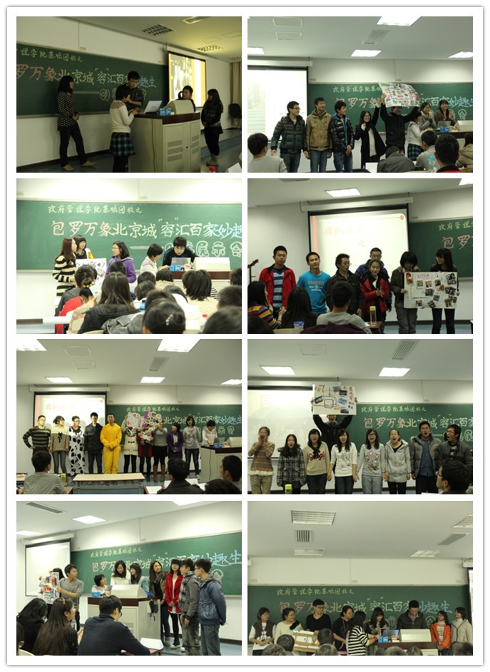 在这一环节中,有的队伍为大家带来了优美动听的改编歌曲,有的队伍表演了搞笑新奇的短剧,有的队伍制作了色香味俱全的美食,为整个活动营造了一个轻松愉悦的氛围。在各组颇具创意,各有特色的展示中,同学们看到了具有北京特色的美味小吃,创意小店,古典建筑和现代化建筑,领略了北京这座古朴与时尚并重的国际大都市风貌,更深深体会了北京精神——“包容”的深刻内涵。