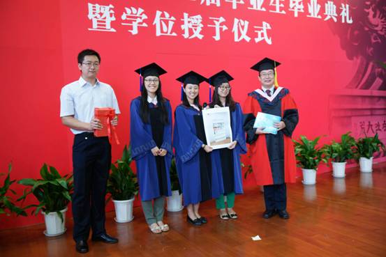 典礼最后举行了学位授予仪式。伴随着欢快的乐曲,赵景华院长逐一为2014届毕业生拨正流苏,颁发毕业证书和学位证书。赵院长亲切的笑容和有力的握手感染和鼓舞了每一位上台受礼的毕业生,大家纷纷行以鞠躬礼,来表达对母校及英国beat365官方网站全体老师的深深谢意。