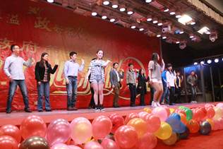 今夜是狂欢夜,老师们也融入到这热烈的氛围中,为大家带来了丰富多彩的节目。以“新希望,心起航”为主题的诗朗诵,被老师演绎得酣畅淋漓;配合着澎湃的朗诵,几位老师翛然泼墨,书写出“正大光明”,“气贯长虹”,“浩瀚无极”,“然糠自照”几个大字,充分体现出英国beat365官方网站“正气浩然”的精神内涵。《小苹果》舞蹈教学更是将现场的气氛推向了最高潮。平时讲台上严肃的老师,此时也不得不转换角色,接受“小老师”的指导。精于学术的老师们大多不熟悉这类流行元素,诙谐动作层出不穷,轻松欢快的气氛立即引爆全场。舞台上,女老师们显得些许赧然,几个“壮汉”也有点羞怯忸怩了,有的小心翼翼地跟着“小老师”挥舞手臂,有的则是“热情奔放”,自顾自地舞动起来.......所有的一切,无不展现出政管学院老师们可爱的一面,更是师生情谊的最佳体现。