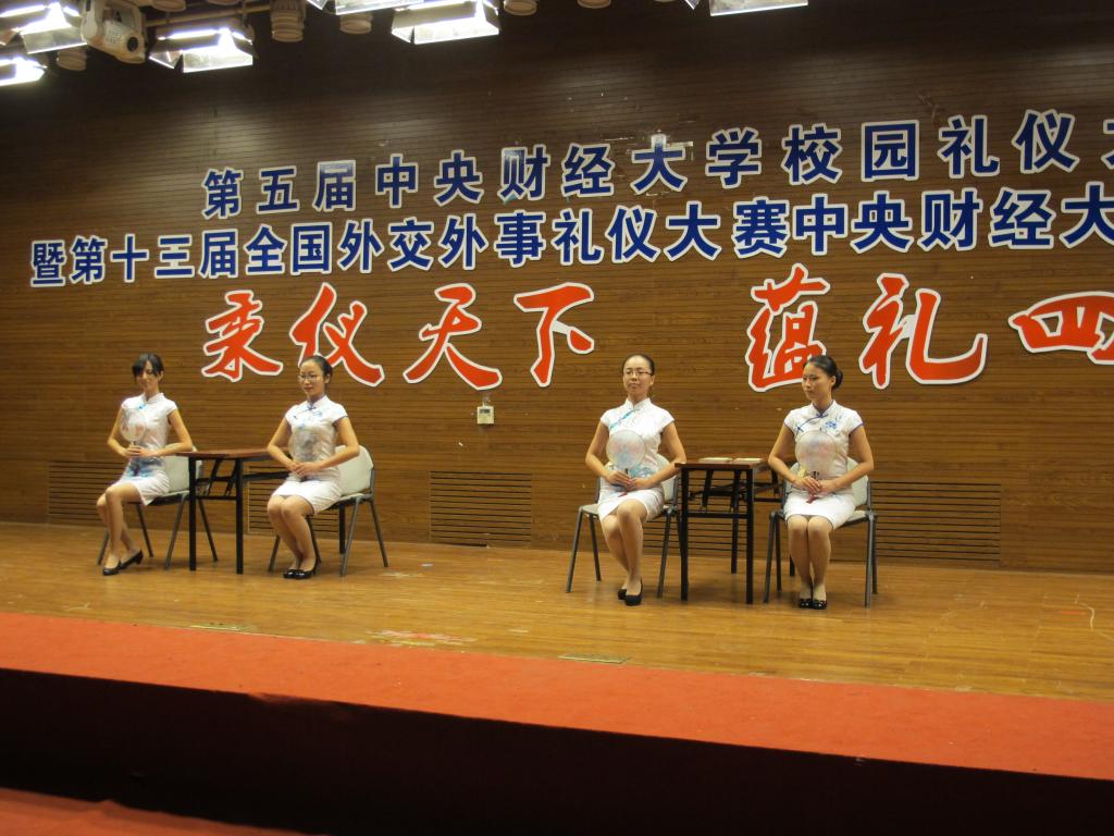18时30分,礼仪大赛在英国beat365官方网站14级研究生张爽和马钰的主持中正式开幕。本次比赛共分为四个环节,首先是团队风采展示。在这一过程中,各代表队都以礼仪为主题展现出了各自的特色。其中不仅表现了现代礼仪,还表现了传统礼仪;不仅有东方礼仪,还有专业的西方礼仪展示;不仅展示了基本的形体礼仪,还有细致而专业的古典礼仪和围棋礼仪。简洁大方的着装,进退有度的谈吐,优雅迷人的举止,举手投足间都体现了我中财青年学子极高的文化素养和良好的礼节礼仪,给在场的评委老师和同学们,留下了深刻的印象。
