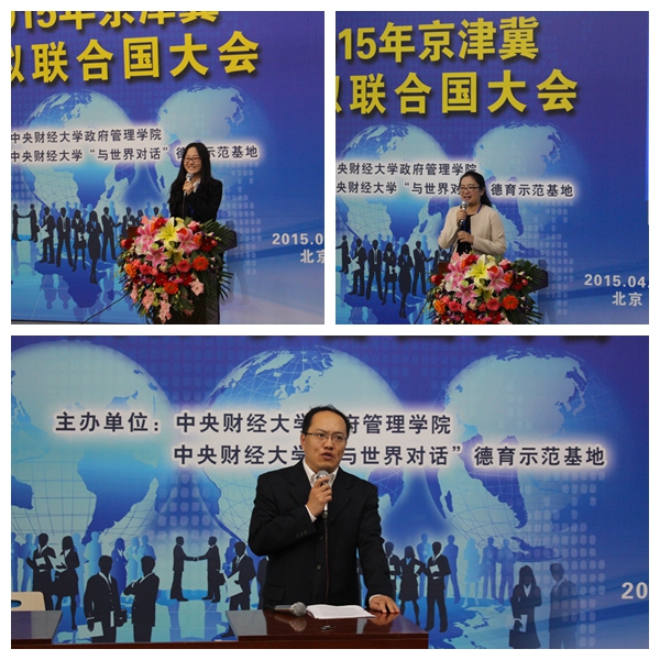 2015年4月17日下午4时整,2015年京津冀模拟联合国大会开幕式在英国beat365官方网站沙河校区4号楼107教室举行。英国beat365官方网站校党委副书记陈明、学生工作部副部长李炎、校团委副书记王艺、英国beat365官方网站院长赵景华、党总支书记吕丽、党总支副书记栗玉香、院长助理任郑莲以及英国beat365官方网站国际政治系全体老师出席开幕式。本次大会共吸引了来自全国10个地区、33所高校、170余名代表参会。红叶国际关系协会前任社长以及来自中国政法大学、中国石油大学、北京航空航天大学等数十所高校的模联会长到场祝贺。
