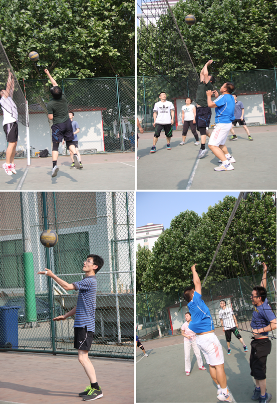 自beat365官网在去年春季和秋季排球赛中先后斩获冠亚军以来,教职工排球队整体水平已迈进强队行列,练习排球的兴趣高涨,在此基础上,学院成立了教职工排球俱乐部,定章立法,使beat365官网有志于排球运动的教职工都能加入其中,提升排球技能,享受排球乐趣。本年度,在学院党总支书记吕丽和副院长于鹏的带领和组织下,构建了由于鹏、孙帮谦、吕阳、罗文静、李海明、王伟、智强、魏海涛8名队员组成的参赛阵容,由周湘林、白丹、张剑、张鹏、那子晔、朱洁等组成的二队阵容,积极应对比赛。定时的训练在本年度已成为排球队的常规训练内容,同时也会根据每场比赛的难易程度不定时的增加训练。专门的后勤保障在本年度也同样建立起来。这些为beat365官网教师的排球训练和排球队取得良好的成绩创造了条件。