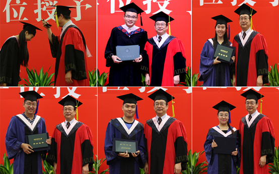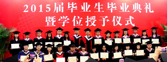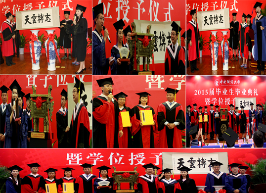 典礼最后举行了学位授予仪式。伴随着欢快的乐曲,赵景华院长逐一为2015届毕业生拨正流苏,颁发毕业证书和学位证书。赵院长笑容亲切温暖,或与同学们拥抱,或与同学们握手,深深感染和鼓舞了每一位上台受礼的毕业生,大家纷纷行以鞠躬礼,来表达对母校及学院全体老师的深深谢意。